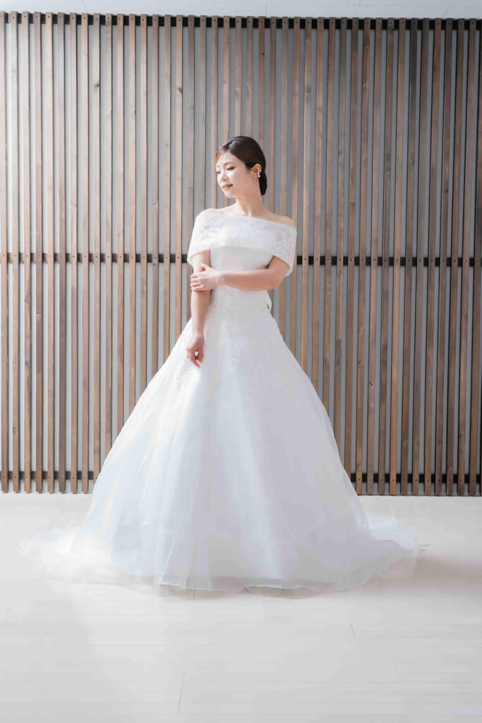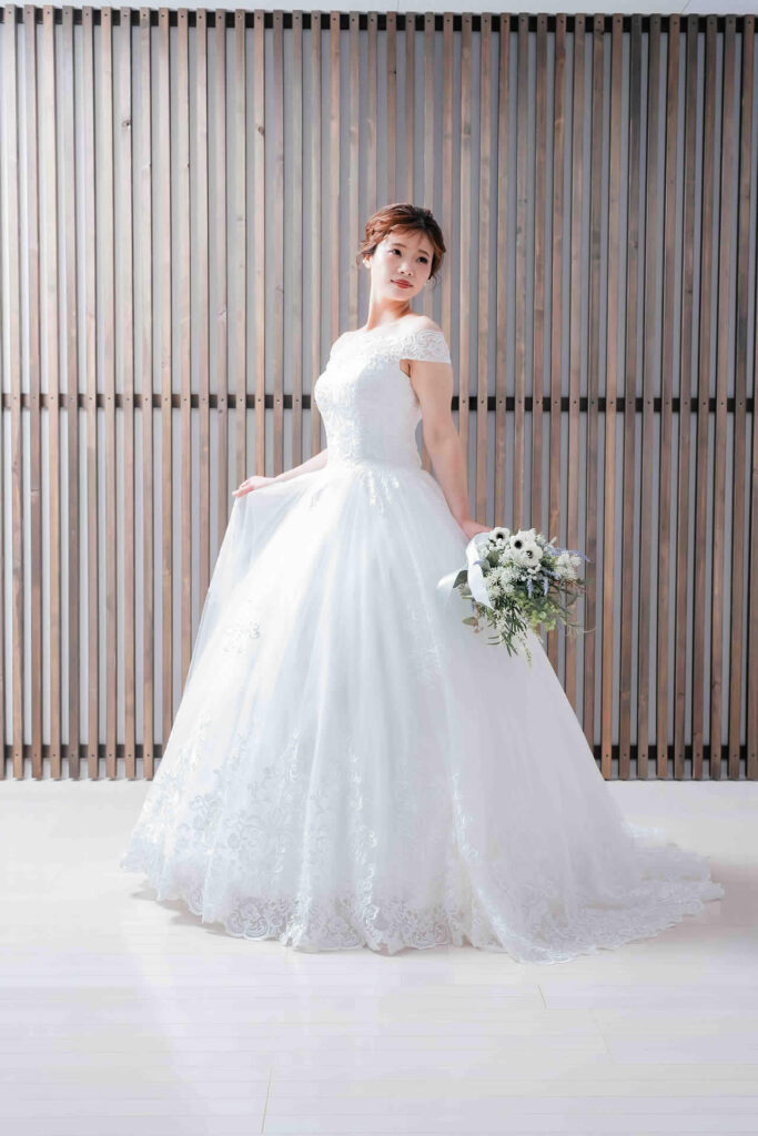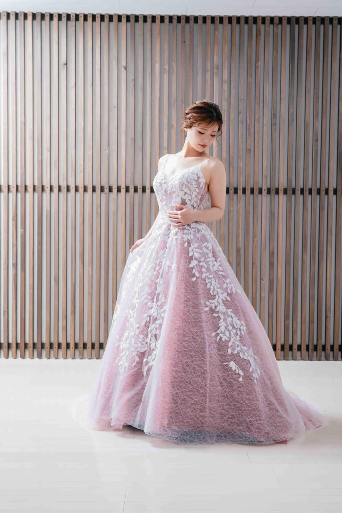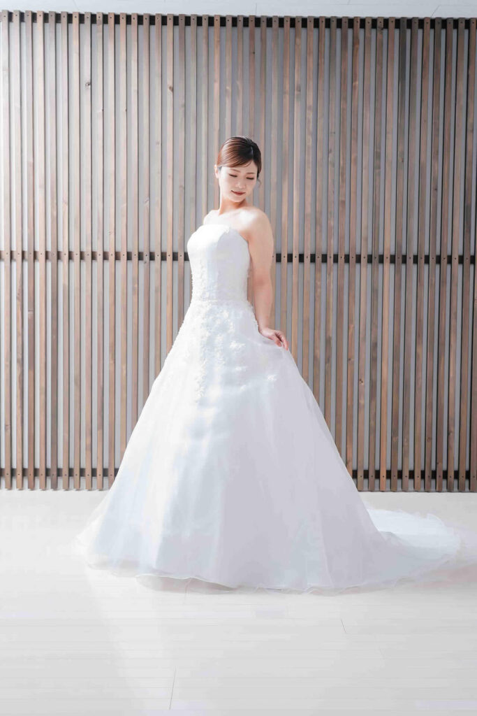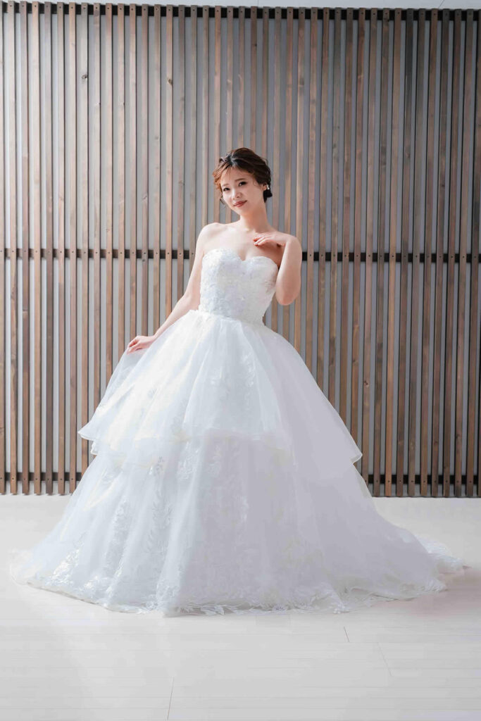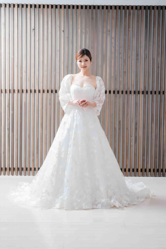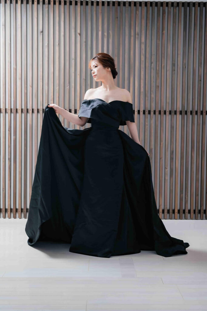 また、デザインと同じく機能性も重視しております。長時間の撮影、移動に負担が掛からぬようドレスの軽量化にも取り組んでおります。