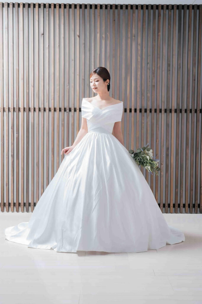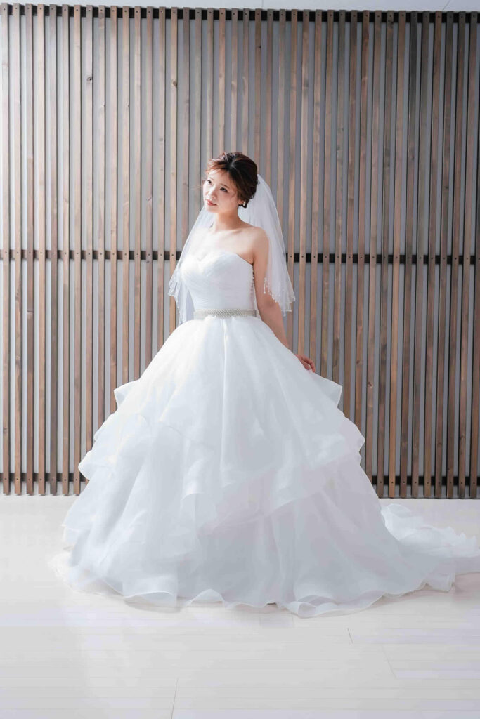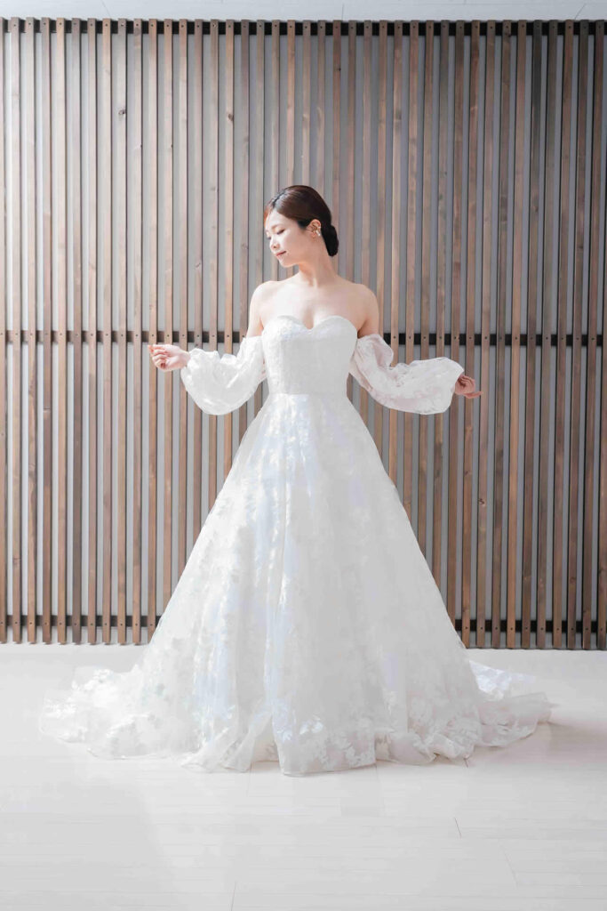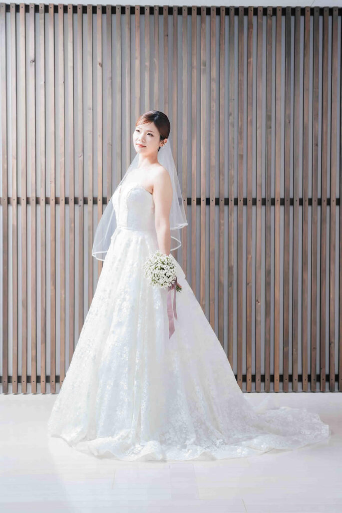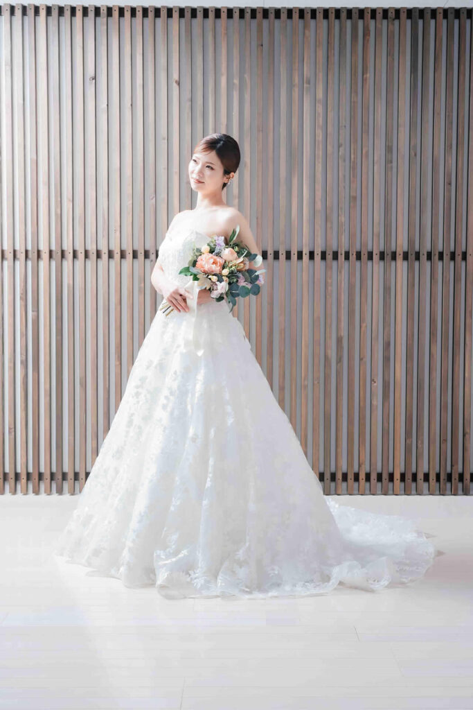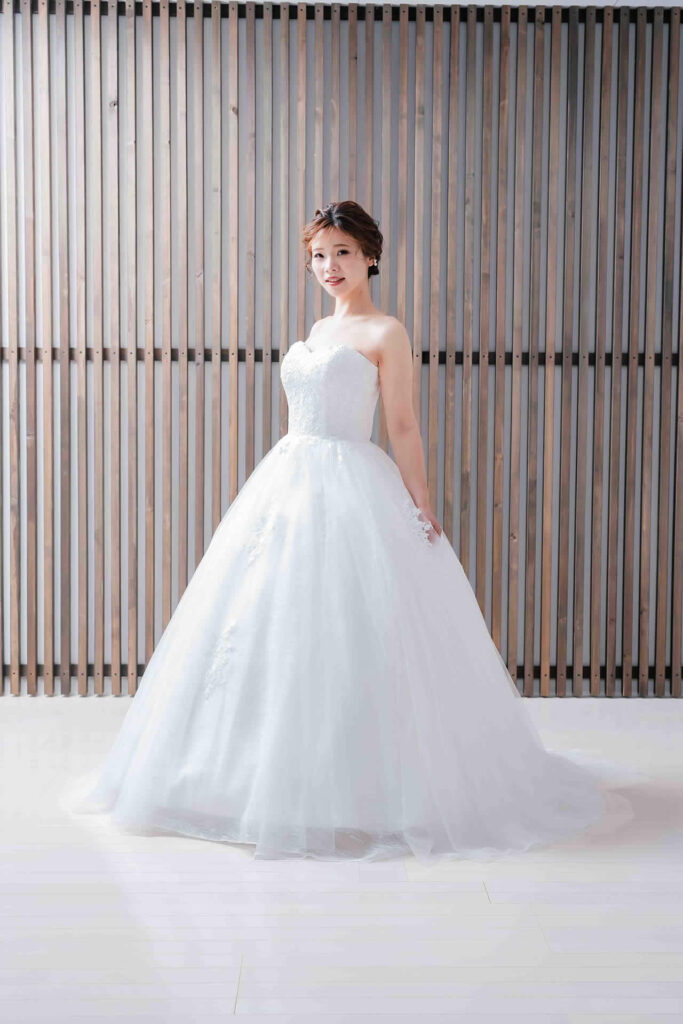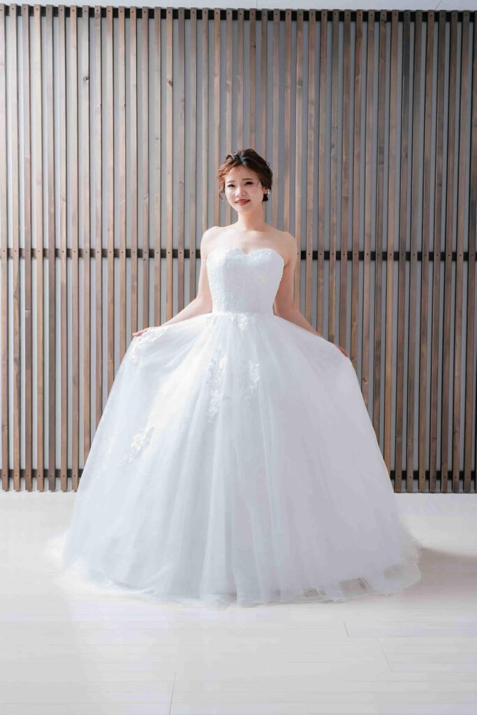 また、デザインと同じく機能性も重視しております。長時間の撮影、移動に負担が掛からぬようドレスの軽量化にも取り組んでおります。