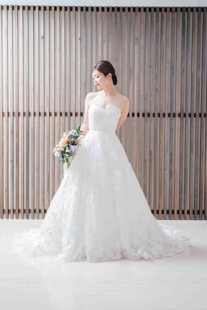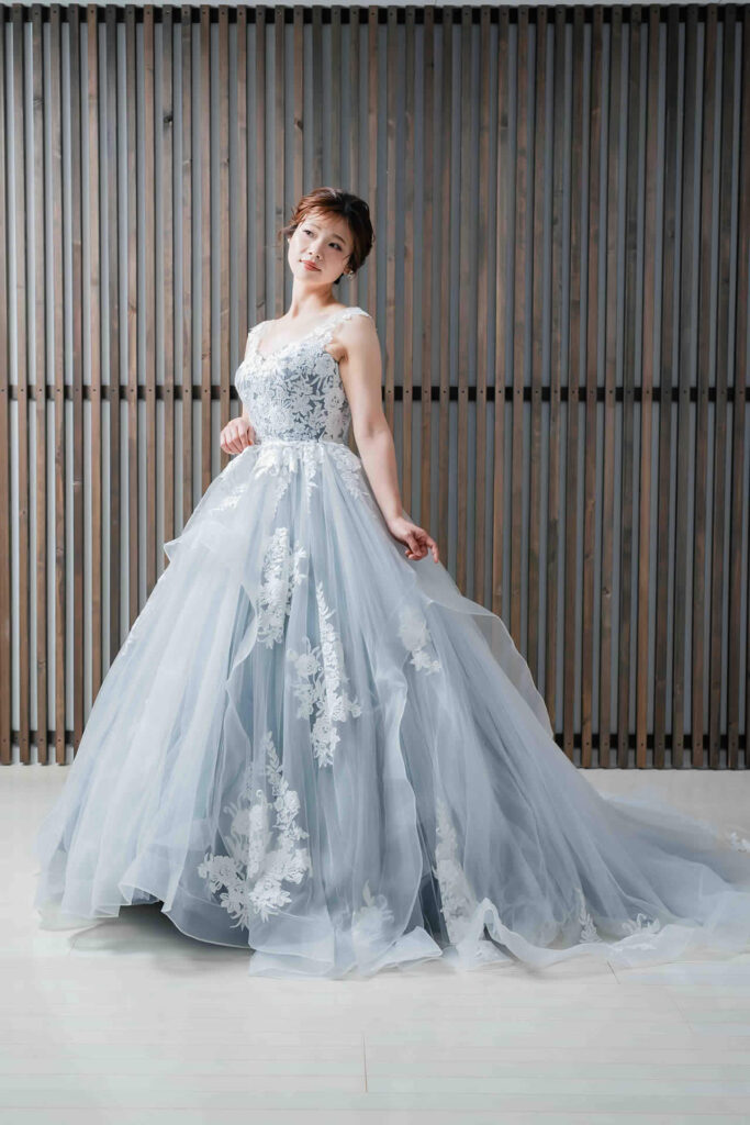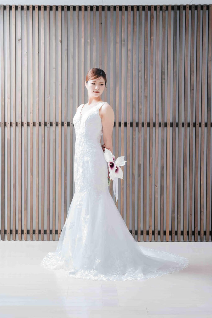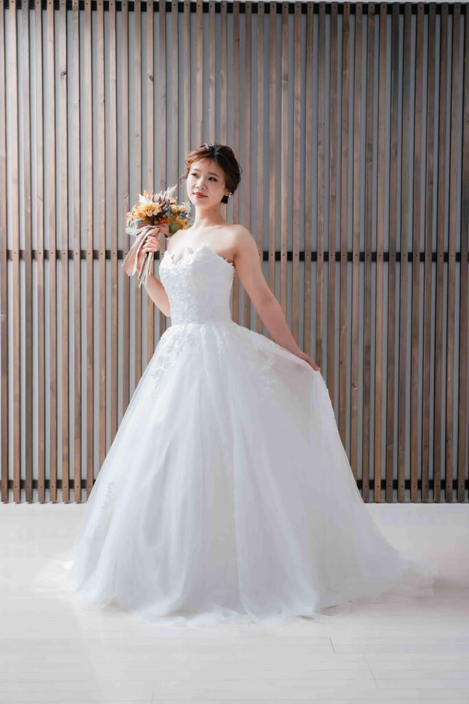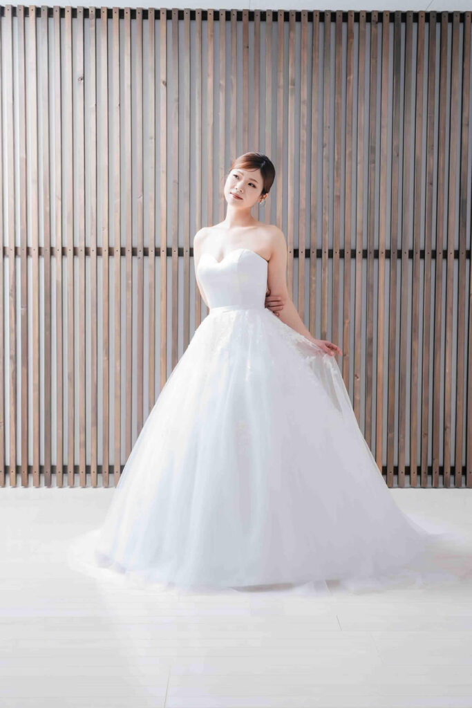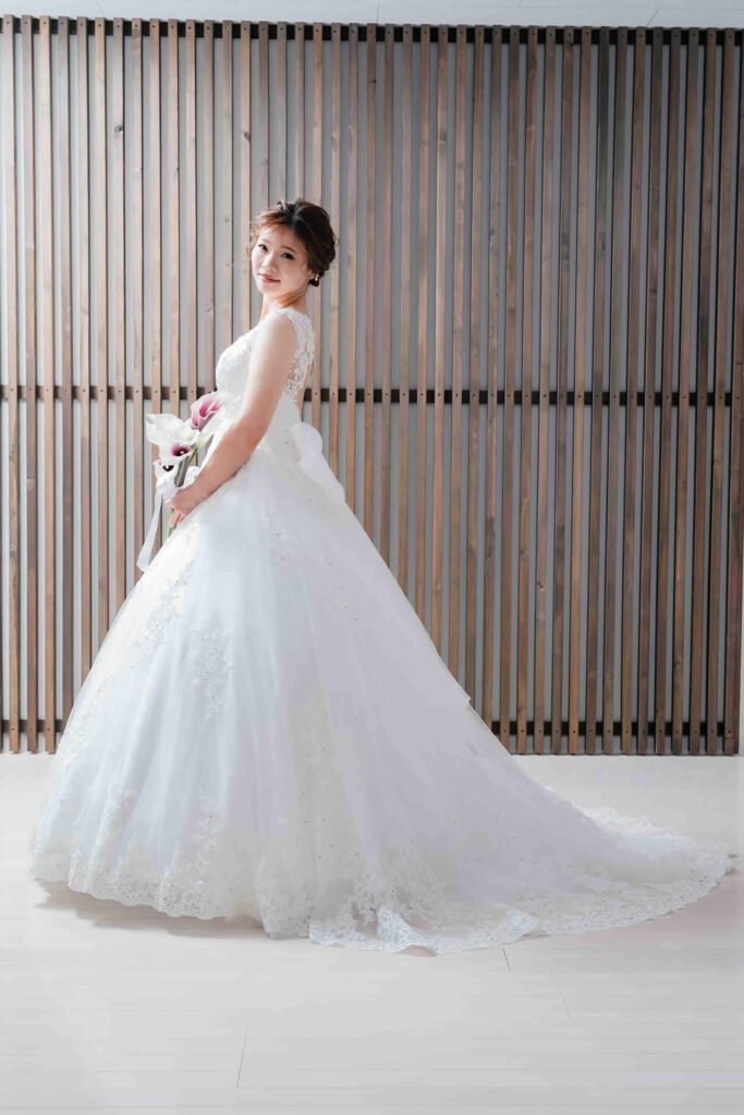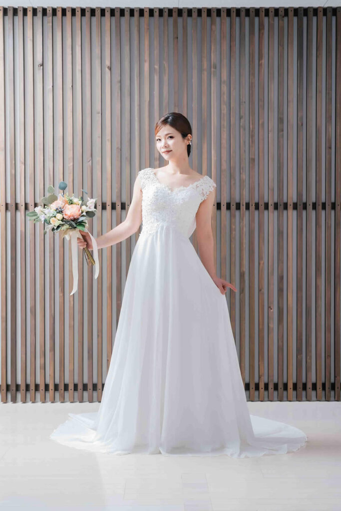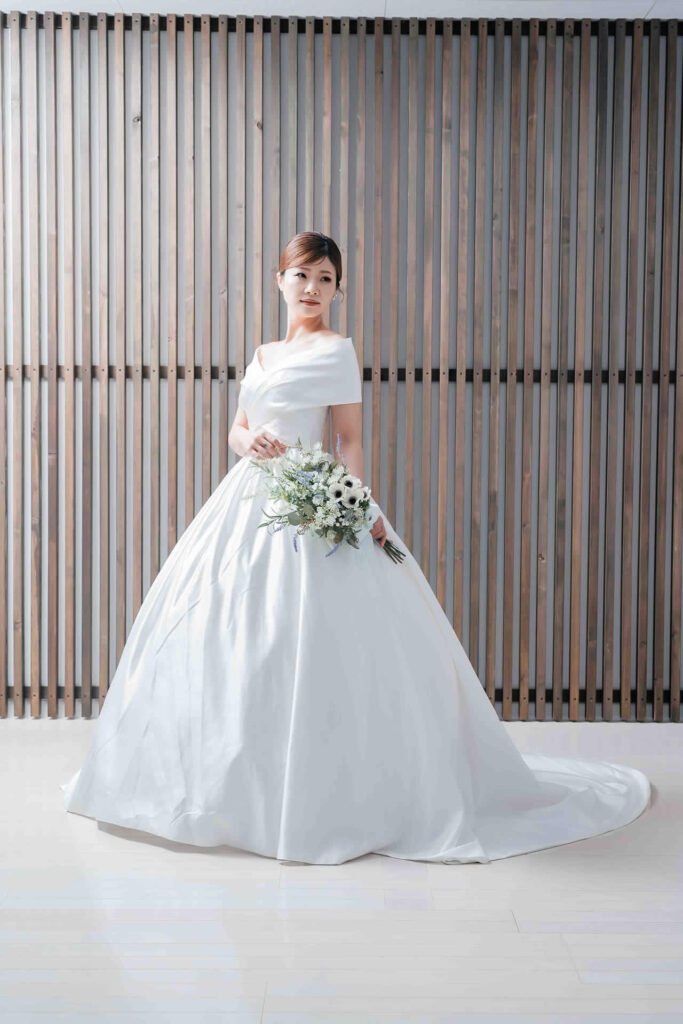 また、デザインと同じく機能性も重視しております。長時間の撮影、移動に負担が掛からぬようドレスの軽量化にも取り組んでおります。