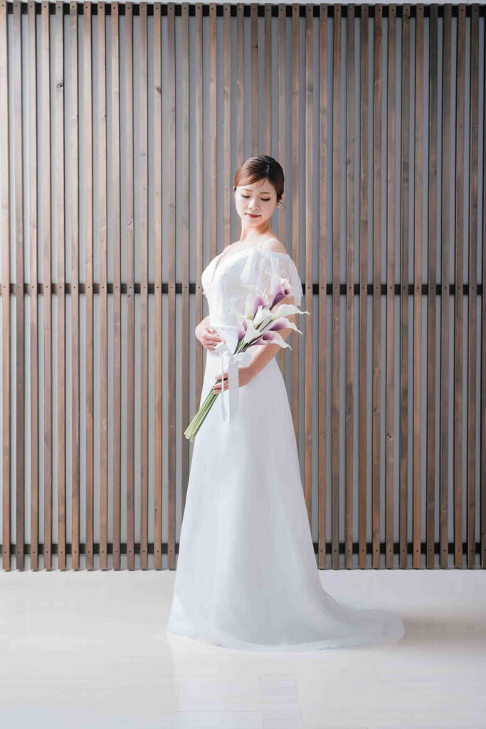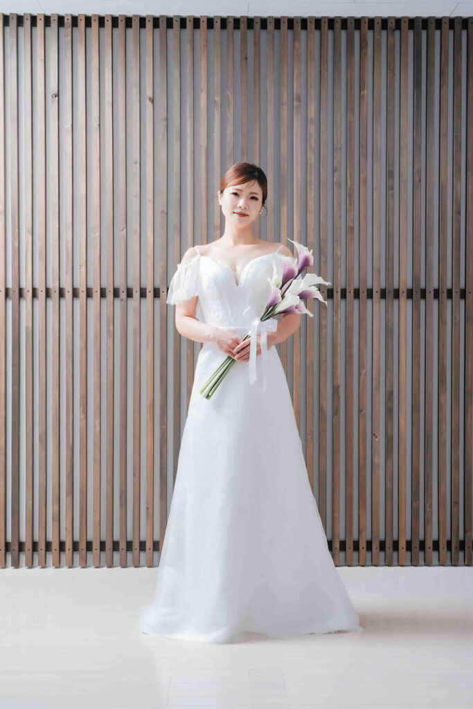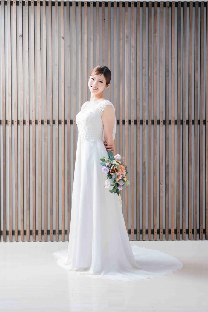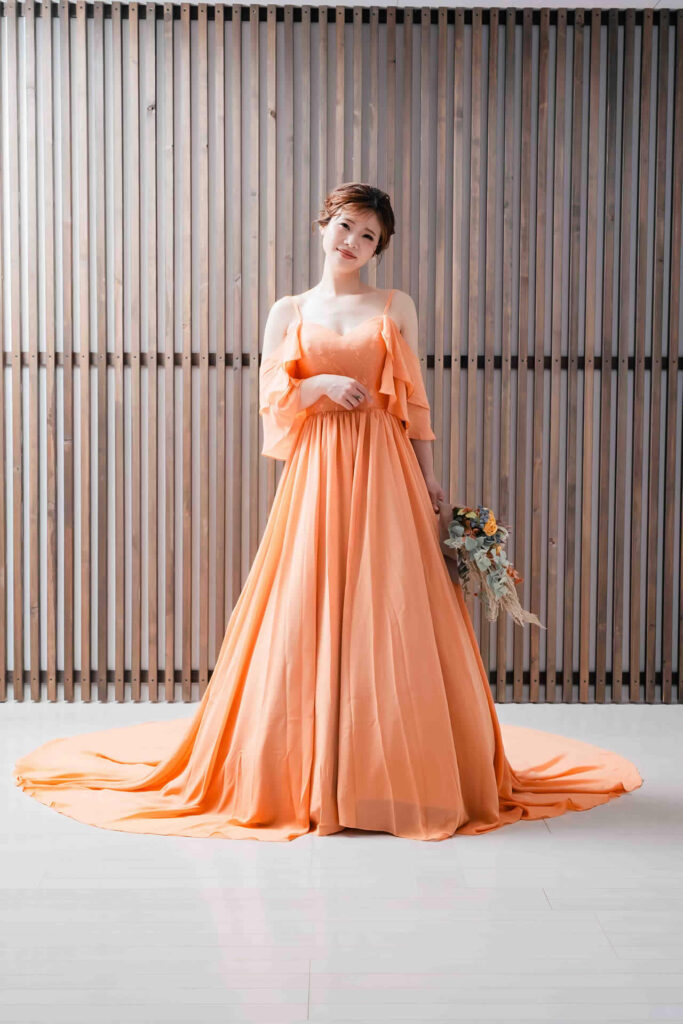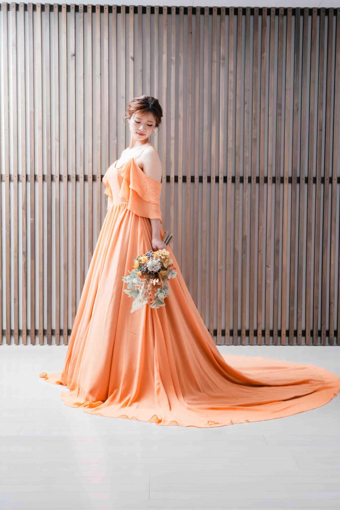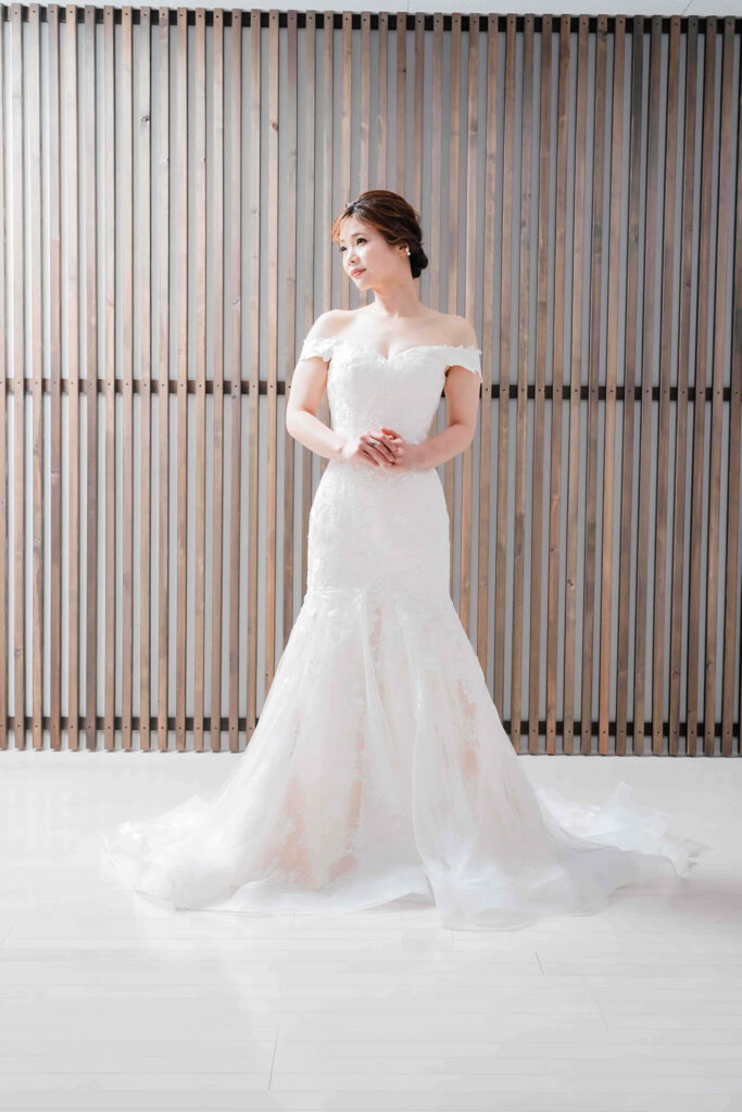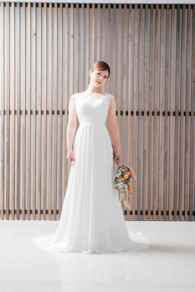 また、デザインと同じく機能性も重視しております。長時間の撮影、移動に負担が掛からぬようドレスの軽量化にも取り組んでおります。