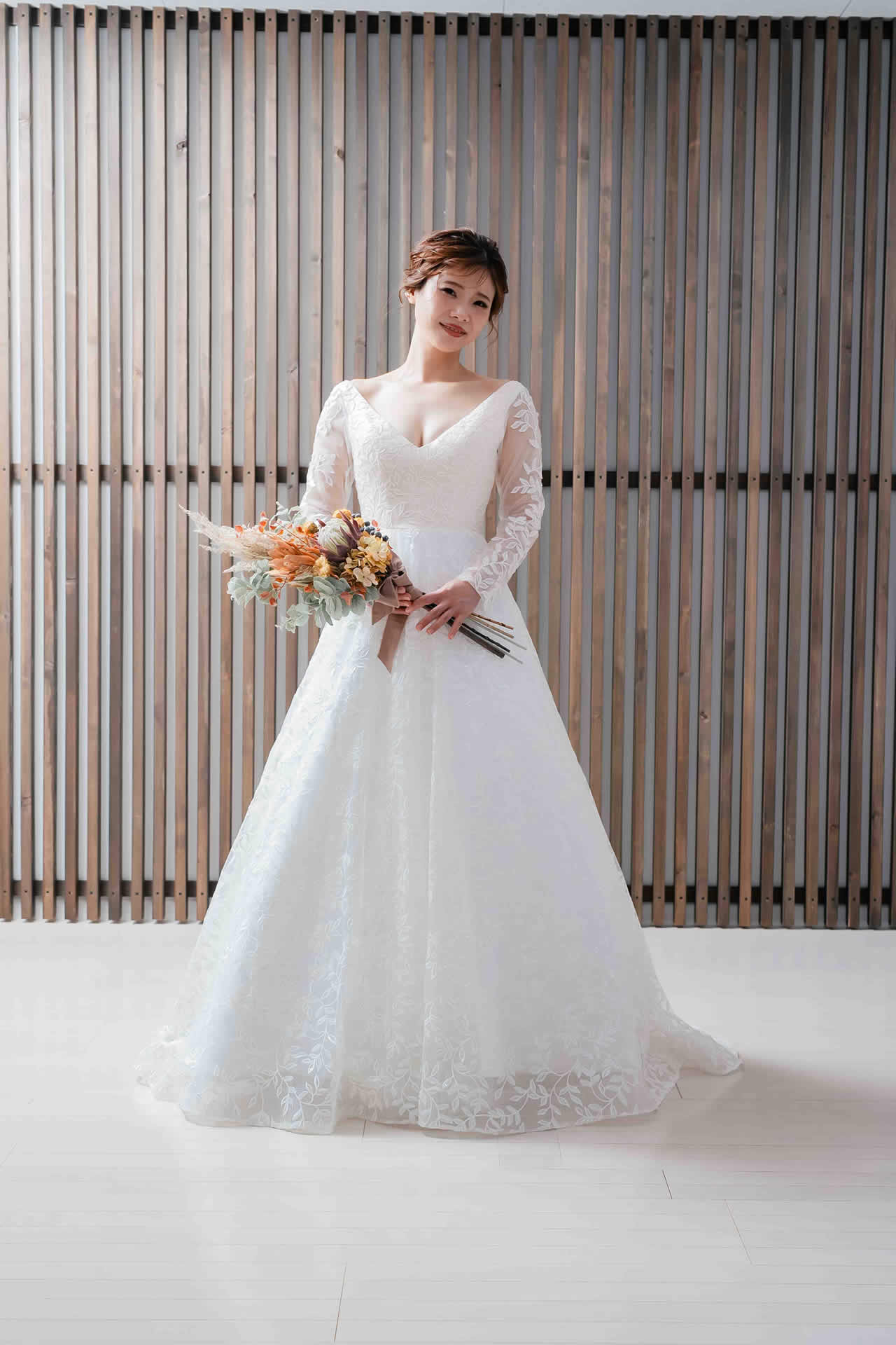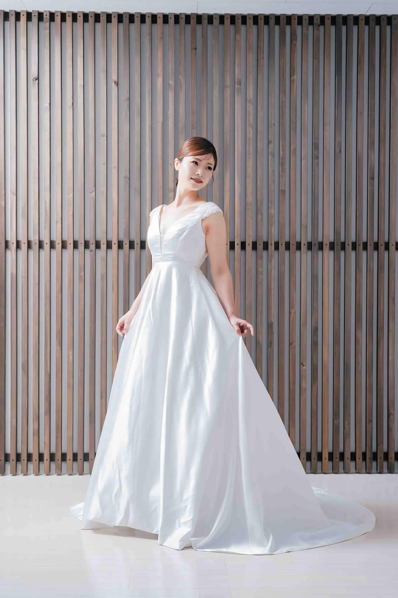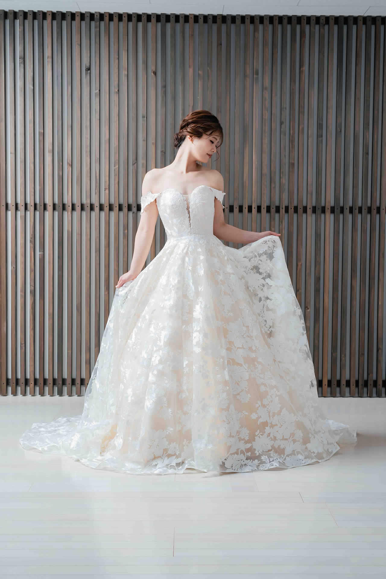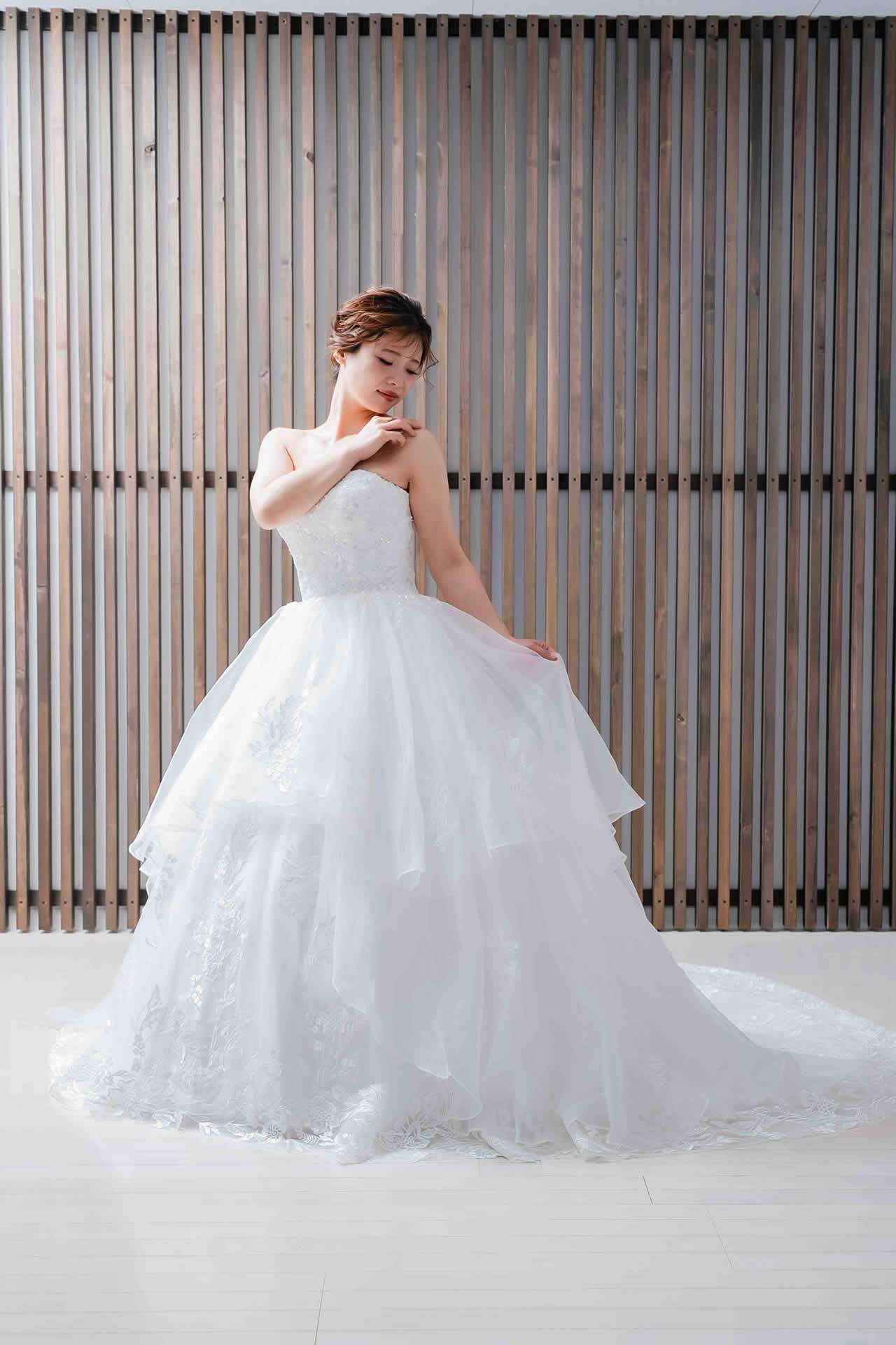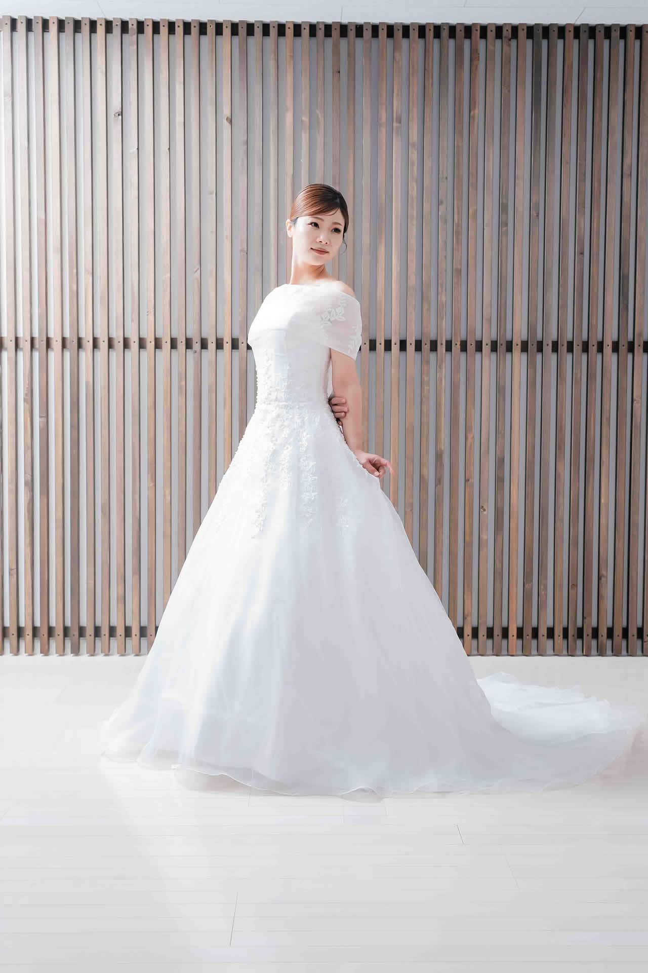 また、デザインと同じく機能性も重視しております。長時間の撮影、移動に負担が掛からぬようドレスの軽量化にも取り組んでおります。