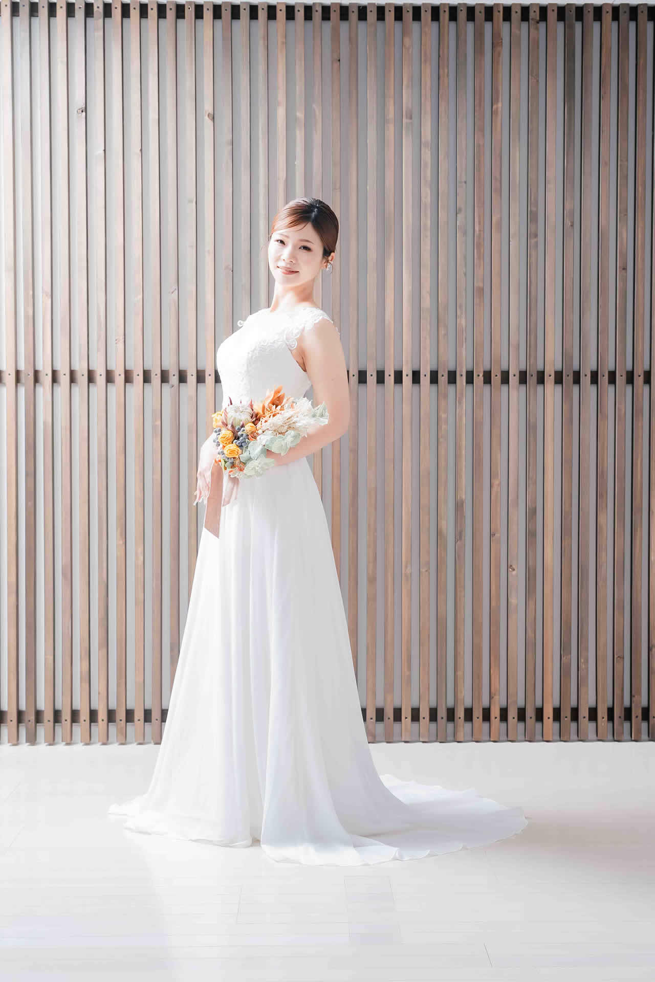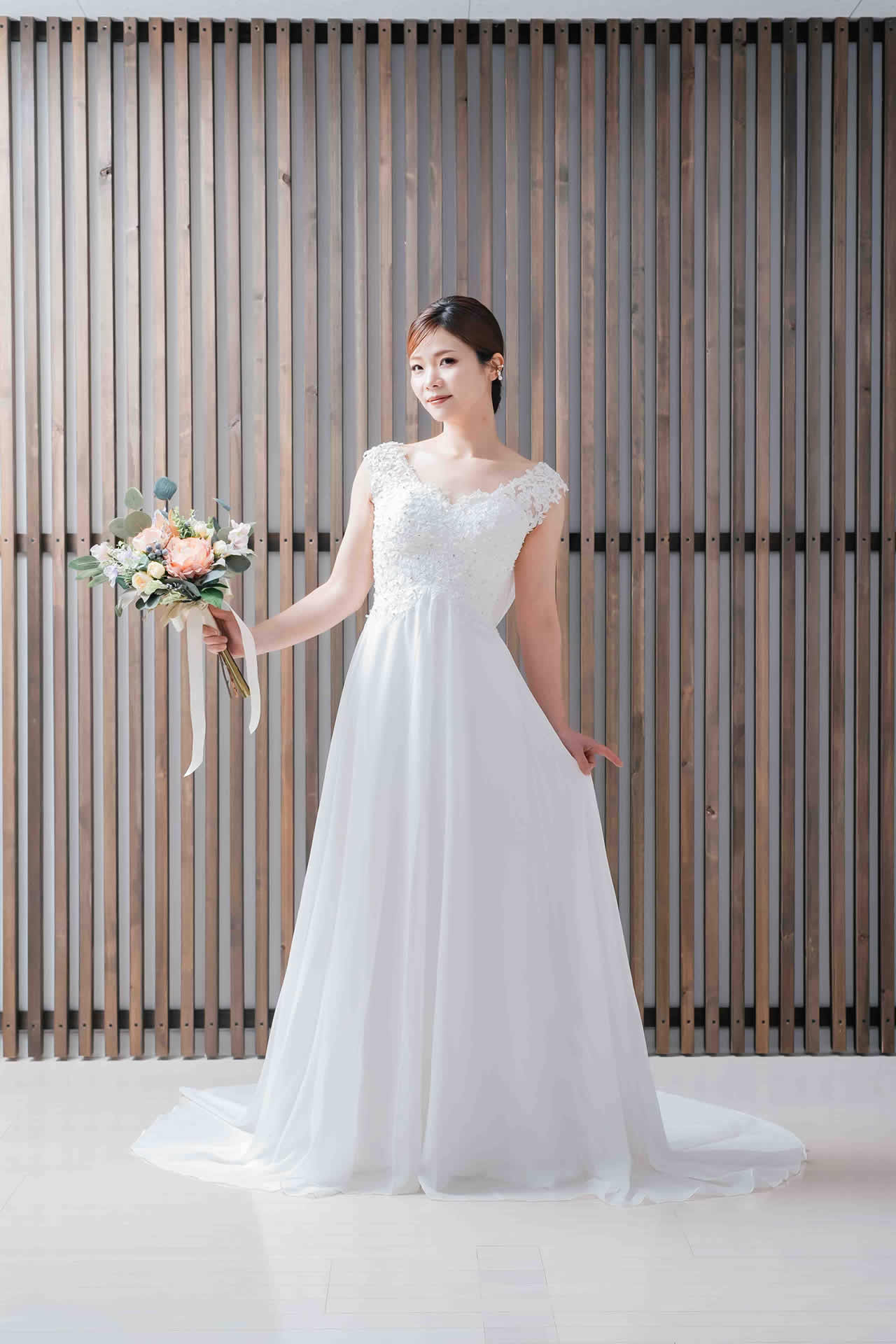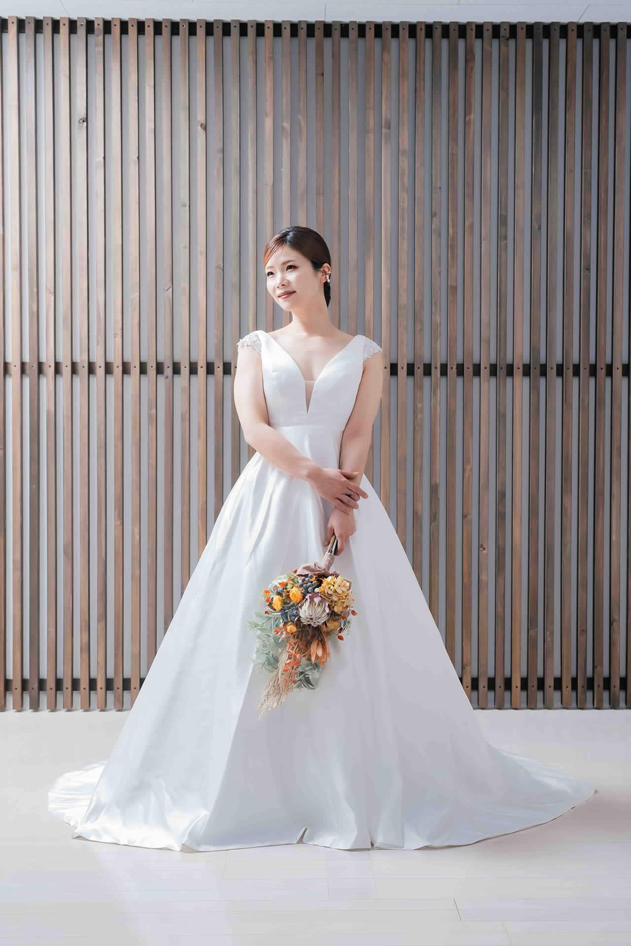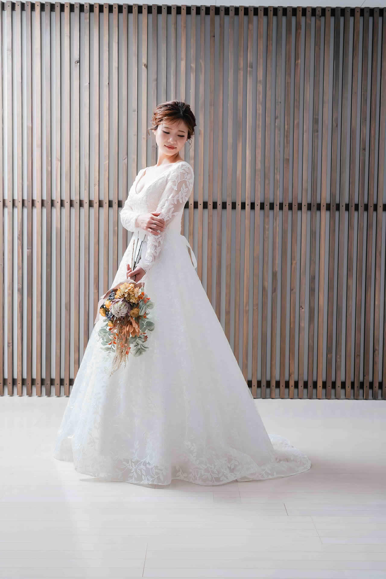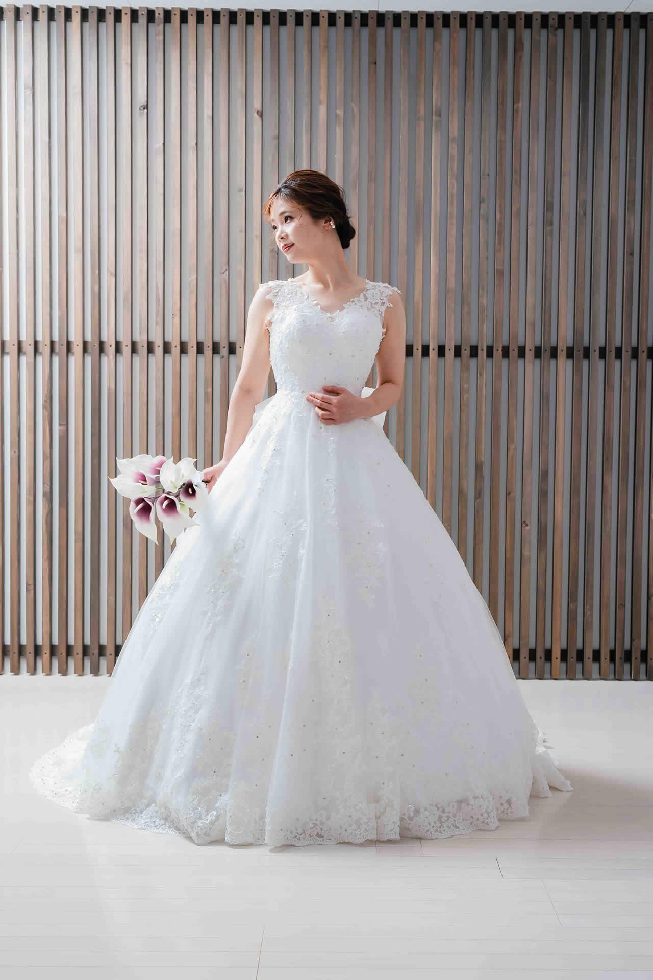 また、デザインと同じく機能性も重視しております。長時間の撮影、移動に負担が掛からぬようドレスの軽量化にも取り組んでおります。